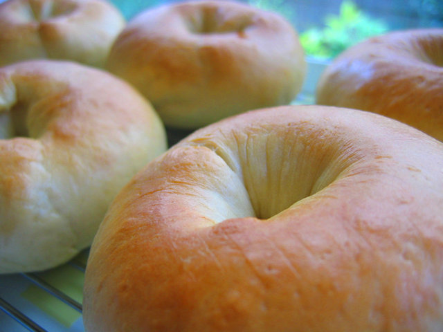 約3か月、ワタクシの右手首骨折の為、製造中止を余儀なくされていた“ベーグル”を、 数日前から、やっと、焼き始めた。 “ベーグル”を焼く、という作業は、手間が掛かると言えば掛かるのだけど、 なんとも言えないシアワセを感じる作業でもある。 こねる時の感触、成形が上手に出来た時の満足感、 そして、ぷっくりと発酵したベーグルのカワイイ姿、 どれも、今風に言えば、“ほっこり”としたシアワセというカンジかな。^^